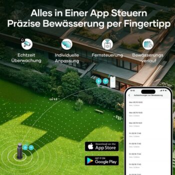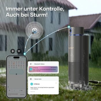 - Anpassung je nach Regenvorhersage: Sobald das System mit dem WLAN verbunden ist, passt es den Bewässerungsplan automatisch an das Wetter an.