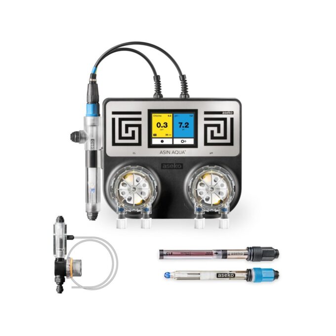 Die Dosieranlage von ASEKO bietet Ihnen ein Schwimmbecken mit sauberem und sprudelndem Wasser mit einer Mindestmenge an Chemikalien. ASIN AQUA CLF ist eine kompakte Dosieranlage für Whirlpools und Pools von 1 – 250 m3. Sie misst und regelt automatisch das freie Chlor und den pH-Wert. Mit dem Touchscreen-Display haben Sie völlige Kontrolle über Messung und Regulierung Ihres Schwimmbeckens. ASIN AQUA funktioniert mit Ihrer bestehenden Filteranlage. Dieses Dosieranlage ist auch als NET Variante mit Internetverbindung erhältlich.