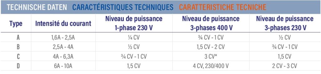 - magnetothermischer Schutz (von 1,6 bis 10A)