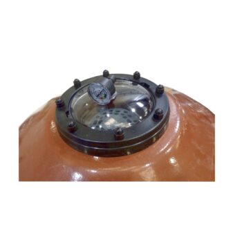 - der Deckel mit grossem Durchmesser aus beständigem Kunststoff, mit integriertem Manometer