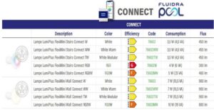 Weiter gibt es die LumiPlus Connect Lampen, welche über die Fluidra Pool-App gesteuert wird. Diese Lampen sind in den Farben weis und RGB erhältlich. Über die App können Sie eine Zeitplan definieren, die Intensität der Beleuchtung und bei RGB-Lampen die Farbe und die Farbwechselgeschwindigkeit steuern.