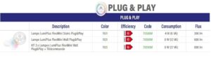 Es gibt LumiPlus Plug&Play Lampen. Diese werden mittels Kontrollgerät (im Set oder separat erhältlich) gesteuert. Es handelt sich um RGB Lampen, welche über 12 Farben ermöglichen. Es sind 8 verschiedene Farbsequenzen und 8 Farbwechselgeschwindigkeiten möglich.