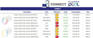 Weiter gibt es die LumiPlus Connect Lampen, welche über die Fluidra Pool-App gesteuert wird. Diese Lampen sind in den Farben weis und RGB erhältlich. Über die App können Sie eine Zeitplan definieren, die Intensität der Beleuchtung und bei RGB-Lampen die Farbe und die Farbwechselgeschwindigkeit steuern.