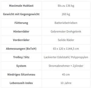 - einfach zu bedienen und zu handhaben dank zwei soliden Rädern vorne und zwei gebremsten Schwenkrädern hinten