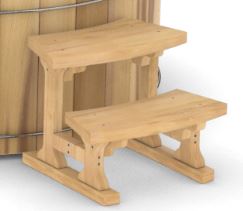 Eine aus Holz gefertigte, zweistufige Treppe erleichtert den Einstieg in das nordische Bad, sodass Sie sich unkompliziert in das angenehme Wasser gleiten lassen können.