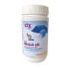 Die Gesamtalkalität des Wassers sollte zwischen 125 und 150 ppm (CaCO3) liegen und regelmässig mit einem Testkit überprüft werden. Verteilen Sie die erforderliche Dosis des aufgelösten Granulates gleichmässig im Wasser während laufender Umwälzung.