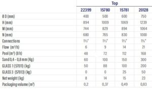 - eingebauter Kollektor am Boden, um einen ausgeglichenen Durchfluss und Filterrückspülung zu gewährleisten