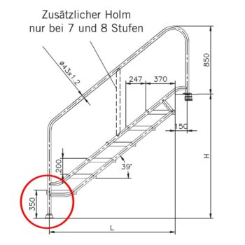 *Der Fuss des Treppenteils, welches im Becken eingelassen wird, kann an die Beckentiefe angepasst werden.