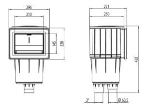 Die neue 17,5-l-Skimmerserie SPS 250 ist dank ihrer geringen Länge von 250 mm für den Einbau in Schwimmbecken aus Styroporblöcken geeignet. Der Skimmer passt in Steine mit einer Tiefe von 250 mm. Randsteine können anschliessend über den Skimmer verlegt werden. Der Körper des Skimmers besteht aus weißem, chemisch beständigem ABS-Kunststoff, der gegen UV-Strahlung beständig ist. Die Befestigung erfolgt mittels Edelstahlschrauben in Messingbacken. Zum Versiegeln der Folie dient eine Doppeldichtung mit Gegenflansch und Zierdeckel. Wir empfehlen die Installation von 1 Skimmer pro 25 m2 Beckenwasserspiegel.