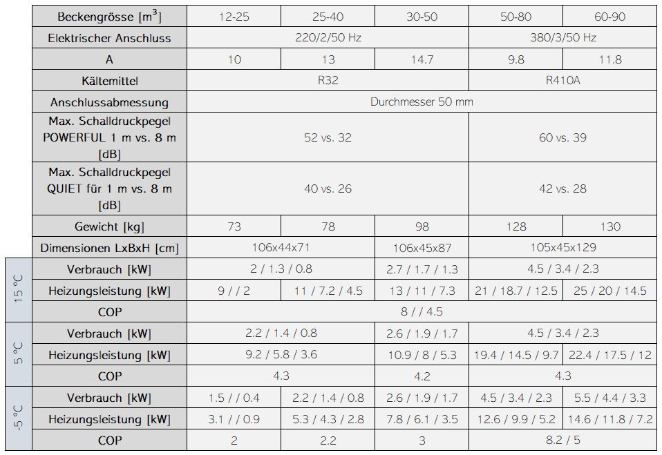 Die Wärmepumpe Pro Elyo Touch von Astralpool arbeitet mit der Vollinvertertechnologie und ist sowohl leise als auch energiesparend. Es bestehen acht Leistungsstufen von 8.5 kW bis 35 kW (bei Temperaturbedingungen von 28 °C Luft / 28 °C Wasser). Minus 20 °C ist die minimale Aussenluft-Temperatur, die die Pumpe zum arbeiten benötigt.