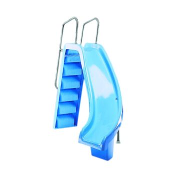 Die Wasserrutsche hat die Farbe Hellblau und kann als Linkskurve oder als Rechtskurve erworben werden.