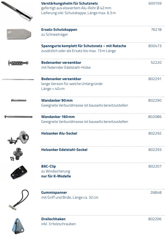 BAC Zubehör für die Schutznetze mit Carmo-Ösen, Edelstahlösen und BAC-Clip