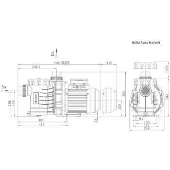 Anschlussmöglichkeiten der Schwimmbadpumpe BADU Alpha Eco Soft: