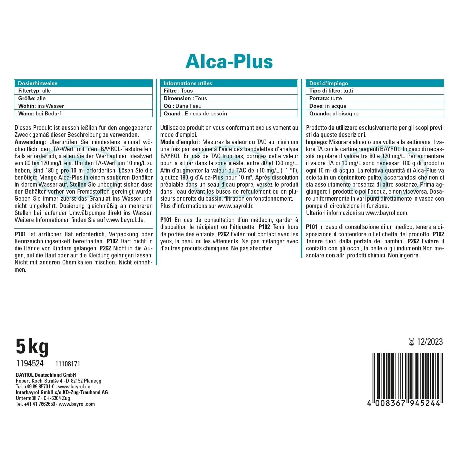 Das BAYROL Alca-Plus Granulat 5kg ist ein bewährtes Wasserpflegeprodukt zur Stabilisierung des pH-Wertes im Pool. Es erhöht gezielt die Alkalinität (TA-Wert) des Wassers und sorgt dadurch für ein stabiles Gleichgewicht, wodurch starke pH-Schwankungen effektiv verhindert werden.