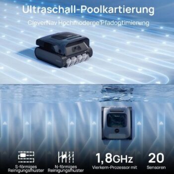 - intelligente Navigation: Ultraschall-KI-Pool-Mapping SonicSense™ und Hindernisvermeidung CleverNav™ Smartes Navigationssystem