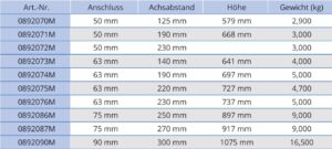 Die BESGO 5-Wege Ventile sind in einer Vielzahl von Achsabständen mit Durchmessern von 50 mm bis 110 mm erhältlich.