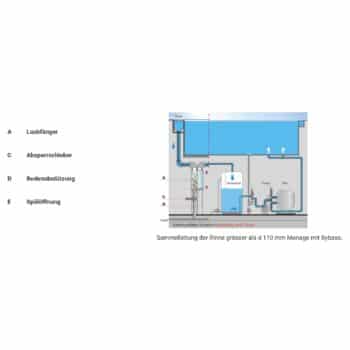 Der transparente Behälter wird zwischen Rinnenablauf und Sammeltank eingebaut. In seinem Inneren befindet sich eine perforierte Trennwand, deren Löcher zwar das Wasser passieren lassen, grobe Verunreinigungen wie Blätter und Äste aber zurückhalten. Ist dieser Sammelbehälter voll, öffnet der Poolbesitzer einfach den integrierten Absperrschieber. Somit wird der gesammelte, zurückgehaltene Schmutz durch das durchfliessende Wasser in die Kanalisation befördert.