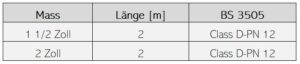 | Mass | 1 1/2 Zoll, 2 Zoll |