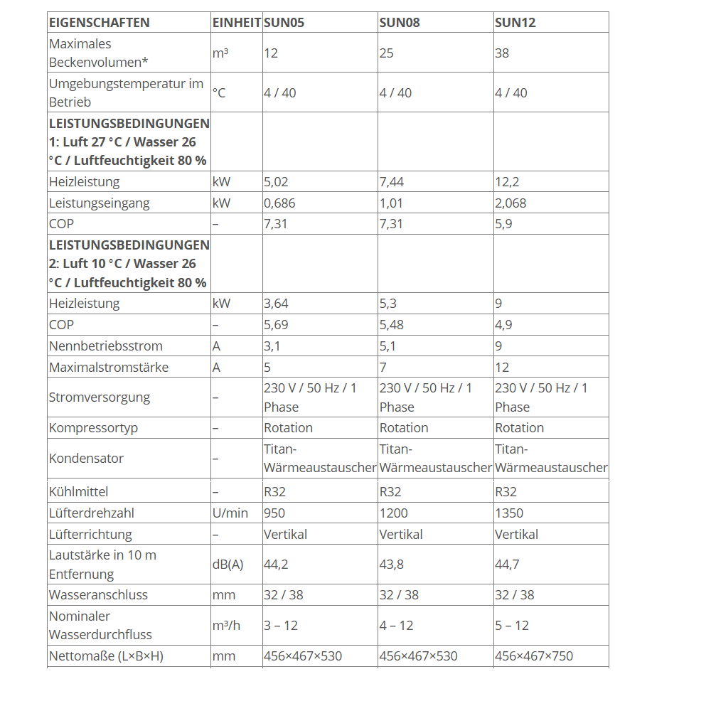 Technisch zeichnet sich die SUNSPRING Wärmepumpe durch eine hohe Effizienz mit einem guten COP-Wert aus und kann bereits bei relativ niedrigen Außentemperaturen betrieben werden. Der hochwertige Titan-Wärmeaustauscher garantiert maximale Beständigkeit gegenüber Chlor- und Salzwasser, während das robuste Polymergehäuse korrosionsfrei, UV-resistent und besonders langlebig ist.