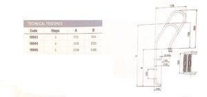 Die Einbauleiter Mixto Asi besteht aus poliertem Edelstahl der Qualität V4AL in Hochglanzoptik. Sie verfügt über einen Holmdurchmesser von 43 mm. Die Holme der Leiter haben einen engen Bogen und sind asymmetrisch, mit einem Holm ein wenig grösser als der andere.