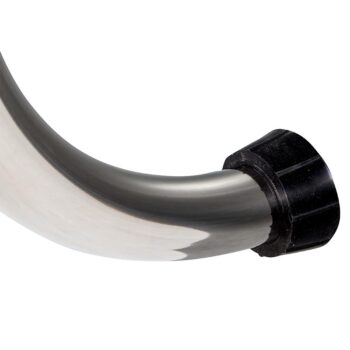 Die Einbauleiter Standard Deluxe besteht aus poliertem Edelstahl der Qualität V4AL in Hochglanzoptik. Sie verfügt über einen Holmdurchmesser von 43 mm. Die Holme der Leiter haben einen weiten Bogen.