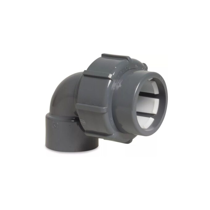 Der Adapterwinkel 90° FlexFit aus PVC-U verwendet als Anschlüsse Klemm x Klebemuffe und ist für einen maximalen Druck von 4 Bar ausgelegt. Den Winkel gibt es in verschiedenen Grössen. Der FlexFit Fitting dient zur Verbindung von Pool- und Spa-Flex-Schläuchen.