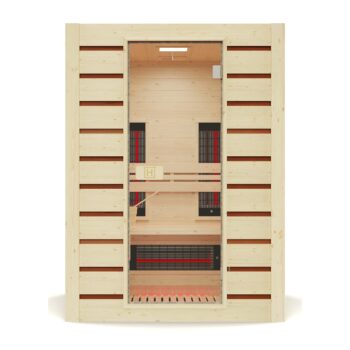 Die Hitze in einer Infrarotsauna ist niedriger als in einer Dampfsauna; es liegt zwischen 40°C und 60°C. Mit einer Kapazität für 2 Personen ist es die ideale Wahl für diejenigen, die jede Sitzung mit einem kompletten und persönlichen Erlebnis optimieren möchten.