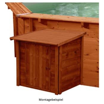 Haben Sie einen oberirdischen Holzpool von SUMATRA und möchten Ihr Filtersystem und anderes Zubehör schützen und verstecken? Dann ist dieser Filterkasten die ideale Lösung! NEU ist der Filterkasten SUMATRA jetzt völlig lasiert und inklusive Rückwand, wodurch er auch separat aufgestellt werden könnte.