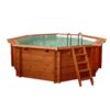 Um den Einstieg in den Holzpool einfach und sicher zu gestalten ist eine hochwertige 4-sprossige Edelstahl V2A Leiter im Lieferumfang enthalten. Die Tritte sind extra breit und rutschfest.