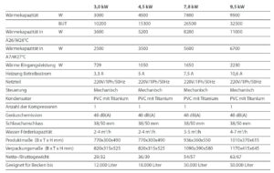 Die Interline Wärmepumpe ECO ist mit einer Heizleistung von 3 kW, 4,5 kW, 7,8 kW oder 9,5 kW erhältlich. Die Wärmepumpe ECO ist je nach Leistungsmodell für Pools von 12 m3 bis zu 50 m3 geeignet.