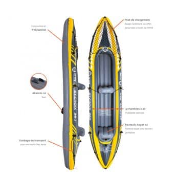 Das aufblasbare 2 Personen-Kajak Zray St. Croix ist für zwei Personen ausgelegt und besteht aus verstärktem PVC für den Boden und die Seitenwangen. Seine traditionelle Form garantiert eine gute Effizienz. Ausgestattet mit bequemen, aufblasbaren Sitzen, sitzen sie bequem und können mühelos paddeln.
