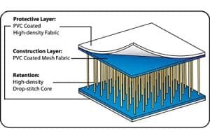 Wie die aufblasbaren Paddleboards zeigen, können mithilfe der Drop-Stitch-Technologie extrem steife Hochdruckformen erzeugt werden. Sobald ein Hochdruckboden im Inneren des Kajaks platziert wird, entsteht ein extrem steifer Rumpf, der die Spurtreue und die Geschwindigkeit des Kajaks verbessert.