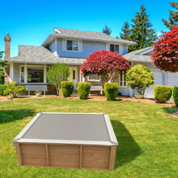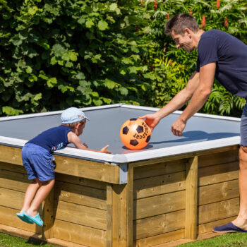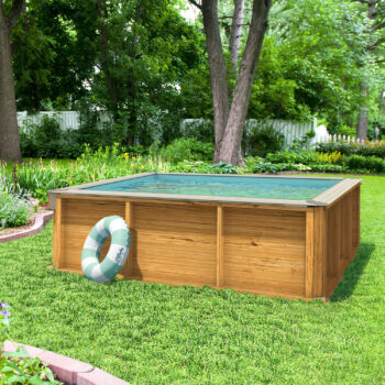 Der Kinder-Holzpool kann als Aufstellbecken- ganz oder auch teilweise in den Erdboden eingelassen werden.