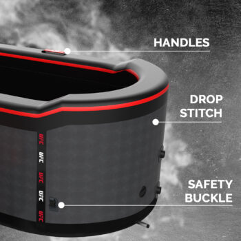 Dank der Drop-Stitch-Technologie ist das Eisbad UFC DUO sowohl steif als auch leicht, was eine schnelle Installation und einen einfachen Transport ermöglicht. Das Hochdruck-Aufblassystem bietet im aufgeblasenen Zustand maximale Stabilität und garantiert so ein optimales Kaltbaderlebnis für maximale Erholung. Das Eisbad UFC DUO ist mit Eiswürfeln kompatibel.
