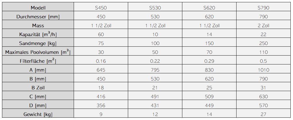 Bitte beachten Sie auch untenstehende Tabelle und Masszeichnung.