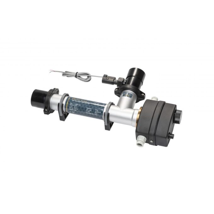 Der Elektroheizer ist in verschiedenen Leistungsstufen erhältlich und kann je nach Beckengrösse ausgewählt werden. Das Gehäuse, wie auch die Heizstäbe bestehen bei dieser Ausführung aus Volltitan, wodurch auch der Einsatz in Salzwasserbecken möglich ist. Der Anschluss erfolgt üblicherweise über 50-mm-Klebemuffen im bestehenden Rohrleitungssystem.