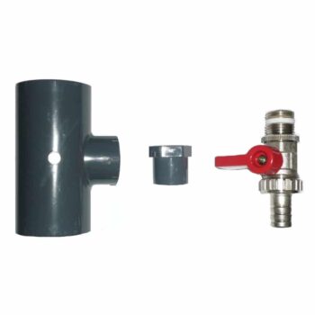 - 1 x Entleerungsset für PVC-Verrohrung d 50 (bestehend aus 1 x Reduktions-T-Stück, 1 x Reduktion, 25 x 1/2″ und 1 x Entleerhahn)