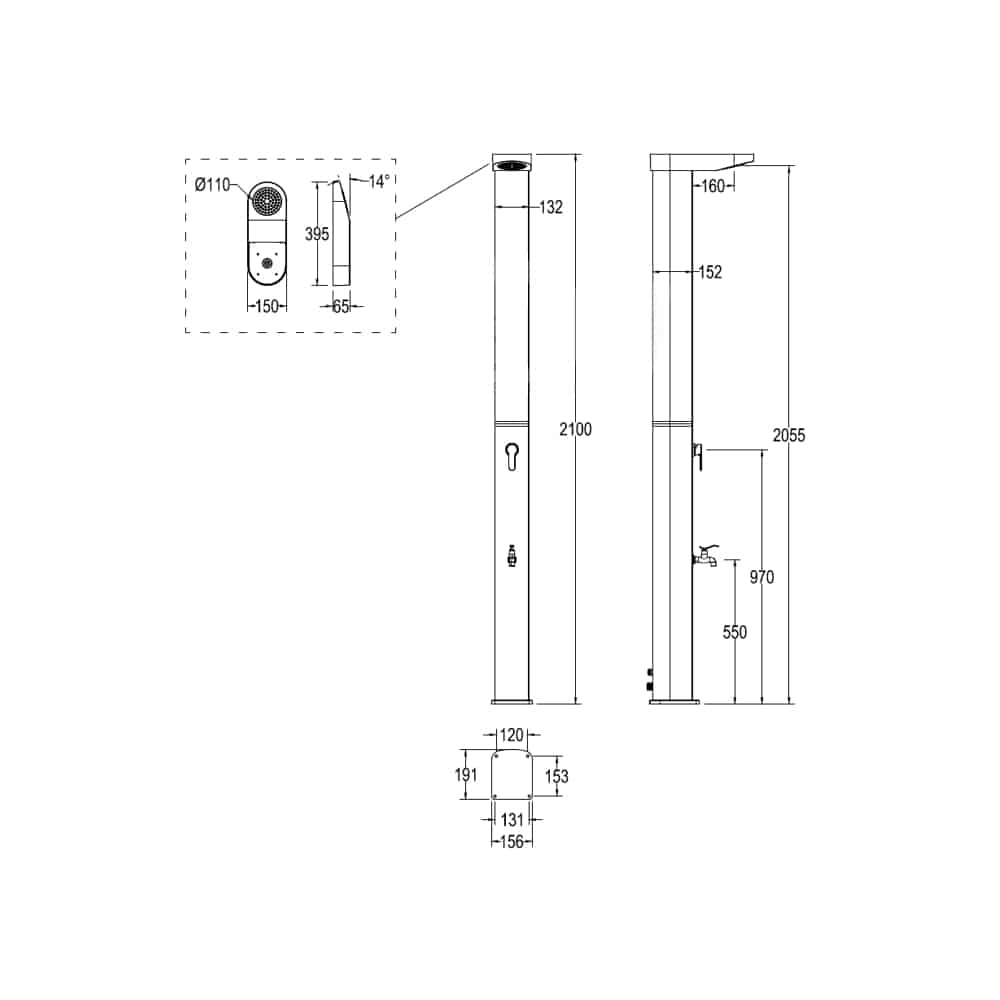 Das moderne, geradlinige Design verbindet hochwertige Optik mit funktionaler Technik und macht die Solardusche zu einem echten Blickfang in Ihrem Garten.