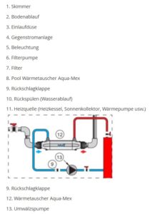 Gehäuse aus glasfaserverstärktem Polypropylen. Spirale aus Incoloy. Nicht für Solebäder geeignet!