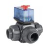 Der 3-Wege-Kugelhahn aus PVC-U mit L-Bohrung und Stellmotor nutzt Klebebuchsen als Anschlüsse und ist für einen Druck von 3 Bar ausgelegt. Die Ventile sind in vielen Grössen erhältlich.
