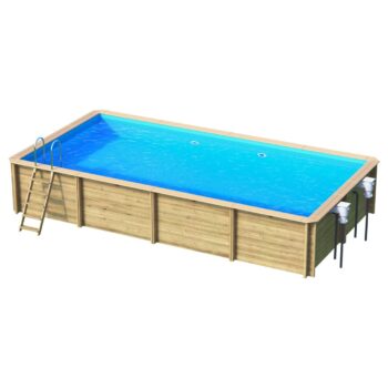 Die hochwertigen Holzschwimmbecken von Procopi verfügen über stabile Wände aus massiver, behandelter Kiefer (Klasse IV). Die Wände haben eine Stärke von 45 mm. Die Modellreihe Octo+ ist zusätzlich mit Stützstreben aus verzinktem Stahl ausgestattet. Das sorgt für mehr Stabilität.