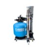 Die Vorfiltereinheit mit „top mount“ 4 bzw. 6-Wege Ventil besteht aus einem Polyethylene Filter Tank und einer Kreiselpumpe. Der mehrschichtige Vorfilter ist mit aktiviertem Filtergranulat (Spezialquartz) unterschiedlicher Körnung gefüllt. Dadurch werden Sedimente zuverlässig aus dem Wasser entfernt.