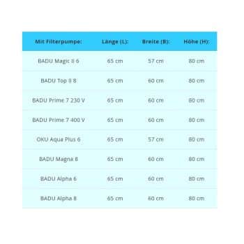 Im Lieferumfang ist der Filterkessel, geräuschdämmende Grundplatte, 6-Wege-Side-Mount-Ventil, Düsenkreuz, Manometer, Pumpe. Das Filtermedium ist im Lieferumfang nicht inklusive. Das passende Filtermedium finden Sie hier -> Link