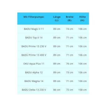 Die Hawaii Sandfilteranlage eignet sich für Pools mit einen Beckenvolumen von bis zu 100 m³. Durch den teilbaren Filterbehälter ist es sehr einfach den Filtersand in den Filterbehälter einzufüllen oder zu tauschen. Als Filterpumpe wird eine Pumpe von der Firma Speck oder Aqua Technix verwendet.