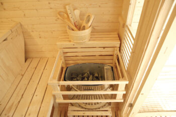 Sie verbreitet tatsächlich trockene Hitze, wobei sich der Begriff „Dampf“ auf den tatsächlichen Dampf bezieht, der entsteht, wenn den heissen Steinen auf dem Ofen Wasser hinzugefügt wird. Dieser steigt schnell an und erreicht in der Regel 80 °C. Der aufgewärmte Körper löst alle Spannungen des Tages und entspannt sich fast augenblicklich.