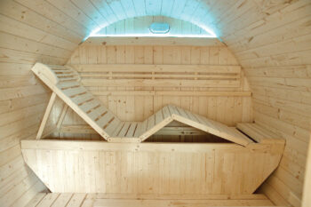 Als echter Entspannungsraum, der im Freien installiert werden kann, bietet die Gaïa Luna Platz für bis zu 6 Personen für einen traditionellen Saunagang.
