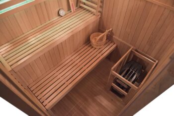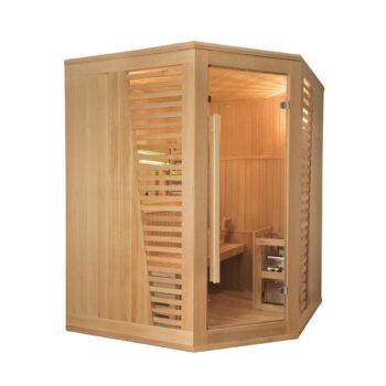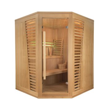 Die neue Sauna Venetian wird Sie mit ihrer lichtdurchlässigen Frontseite überzeugen. So können Sie die Privatsphäre einer geschlossenen Sauna geniessen, ohne sich eingesperrt zu fühlen. Die komfortablen Bänke aus massivem Abachi-Holz laden zum Entspannen ein, während der hochqualitative elektrische Ofen eine sanfte und angenehm feuchte Wärme generiert.