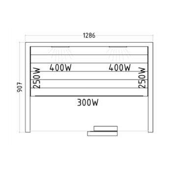 - 2x IR-Rotlicht-Vollspektrumstrahler à 400 W (Rücken)