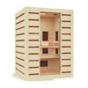 Die Saunakabine der Arktis Infra+ ist aus massivem Fichtenholz gefertigt und verfügt über ein massives Dachelement mit Dachkranz. Die Innenverkleidung und -ausstattung ist aus Lindenholz gefertigt. Lindenholz hat eine sehr weiche und warme Farbe, was der Saunakabine ein angenehmes Wohlfühl-Ambiente verleiht. Die Glasfront ist in einer Grösse dimensioniert, sodass Sie sich zu keinem Zeitpunkt beengt fühlen.