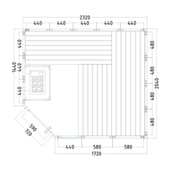 Die Kabine ist speziell gebaut, sodass sie perfekt in einer Raumecke Platz findet. Damit können die vorhandenen Platzverhältnisse in Ihren Räumlichkeiten bestens ausgenutzt werden. Der Sauna-Genuss zeichnet sich bei dieser Sauna auch speziell durch die immensen Platzverhältnisse aus. Ausserdem wirkt die Kabine dank der Glastür und des zusätzlichen Glaselements viel einladender als herkömmliche, komplett geschlossene Saunas. Die Blockbohlen sorgen mit ihrer 40 mm Stärke für exzellente Wärmespeicherung.